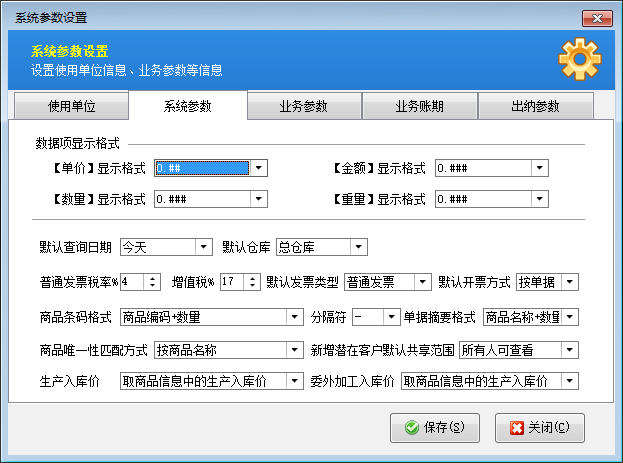????系統參數設置可以設置使用單位信息、系統參數、業務參數以及其他參數。用戶可根據自身業務特點進行參數配置。