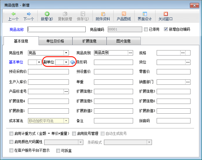 ????副單位用于處理布匹、鋼材等行業,倉庫庫存需要管理兩種單位的數量(比如布匹行業既要知道有多少米,又要知道有多少卷),兩種單位之間并不存在絕對的比例關系(如果是絕對的比例關系,可以使用輔助單位)。