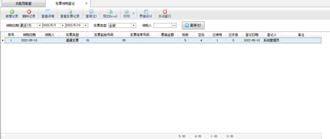 ????發(fā)票領(lǐng)購(gòu)登記是對(duì)銷項(xiàng)發(fā)票空白發(fā)票的領(lǐng)購(gòu)登記,發(fā)票領(lǐng)購(gòu)登記后,在銷項(xiàng)發(fā)票管理界面會(huì)出現(xiàn)登記的空白發(fā)票記錄,可以用來填開發(fā)票。