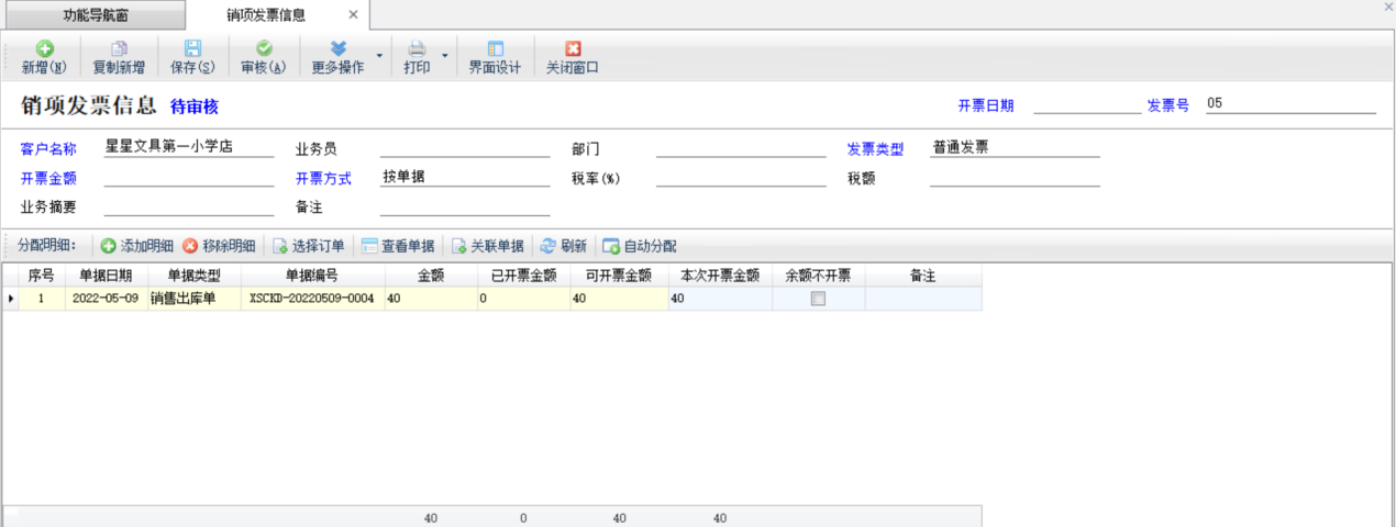 審核發(fā)票:選中發(fā)票,點(diǎn)擊“審核發(fā)票”按鈕,可以審核發(fā)票信息。