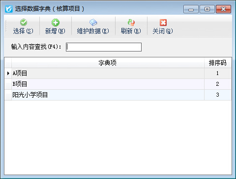 核算項目:點擊選擇核算項目按鈕,彈出“核算項目”窗口,如下圖所示: