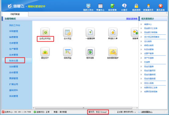 信管飛RMS專業版包含財務處理模塊,支持用戶高效、準確地登記會計憑證,為企業的財務管理提供堅實的數據基礎。在實際使用過程中,部分用戶反饋,當使用操作賬號登錄軟件進行賬務處理時,界面中未顯示生成業務憑證模塊,而系統管理員賬號登錄后該模塊卻能正常顯示,這是因為操作員沒有生成業務憑證權限導致的,本篇文章介紹下如何解決?