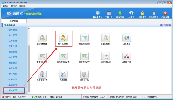 1、以管理員身份登錄軟件,進入【系統管理】→【操作員及授權】