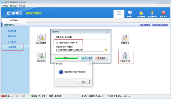 信管飛倉庫管理軟件、信管飛出納記賬軟件、信管飛送貨單軟件、信管飛RMS等本地版軟件賬套數據默認存儲在軟件安裝目錄下,支持對賬套數據進行備份,如需要更換主機電腦,需要在原來的主機電腦上備份賬套數據,將生成的備份文件復制到新的主機電腦上,然后在新的主機電腦上安裝軟件,使用備份文件還原數據即可。用戶在備份賬套時遇到備份失敗的情況,該如何處理?