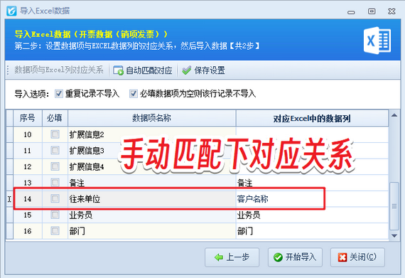 在企業的采購與銷售流程中,發票管理至關重要。信管飛出納記賬軟件憑借其強大的發票管理功能,助力企業高效、精準地處理發票信息。另外,軟件支持導入Excel快速導入發票信息。有用戶在軟件內導出銷項發票Excel模版,維護數據后導入軟件,客戶名稱這一項導入不成功,如下圖所示。 出現以上問題的原因是:表格內“客戶名稱”和軟件內“往來單